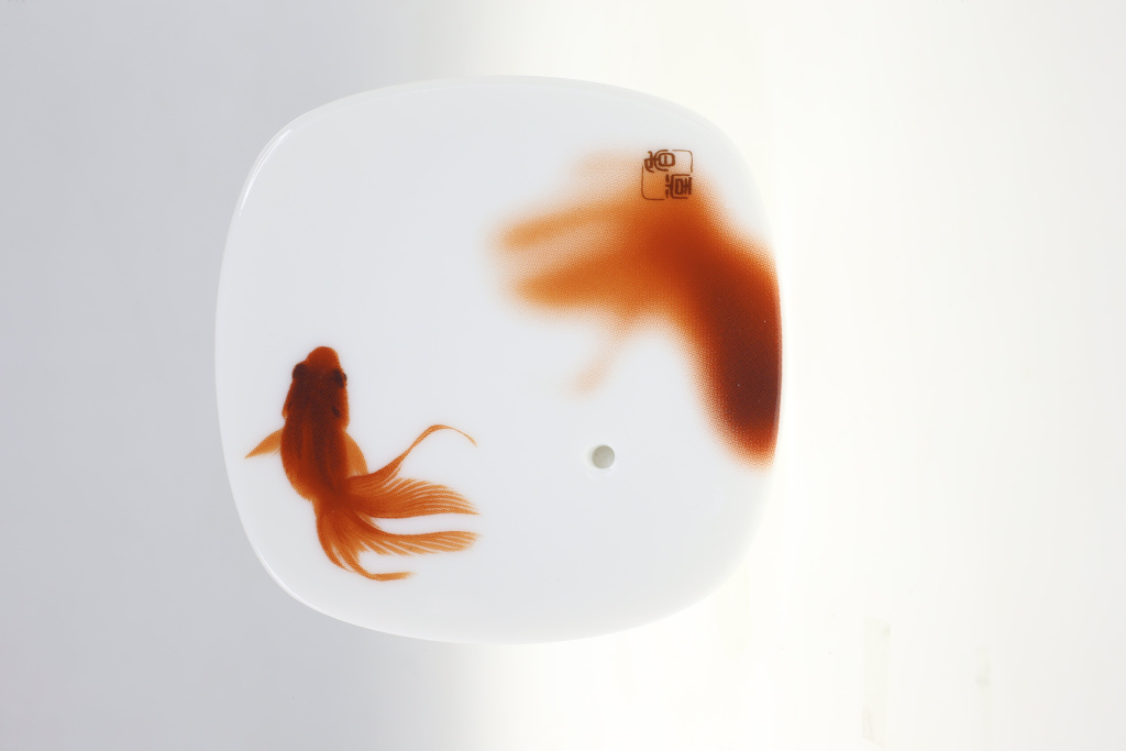 • Japonský porcelánový držák na vonné tyčinky - Zlatá rybka (2)